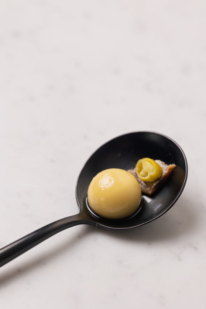 • Mis “papas” aliñas con caviar de aceite de oliva y melva canutera