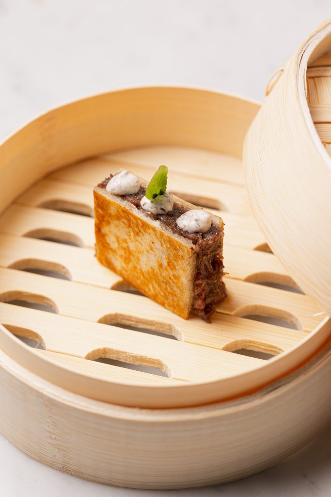 • Bombón de carpaccio de solomillo de ternera rellena de queso trufado
